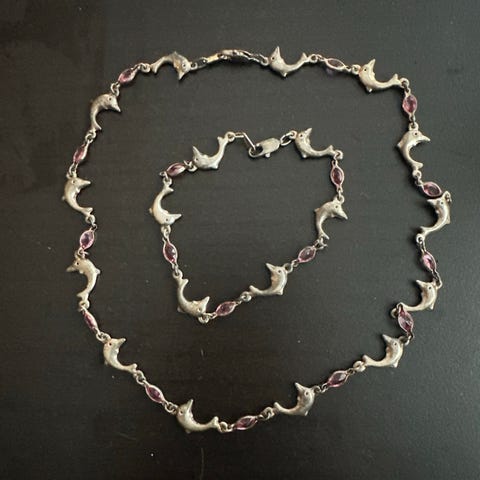 2 halskjeder(lengde 40 cm), og 1 armbånd av serpentiner. Armbåndet har strikk.