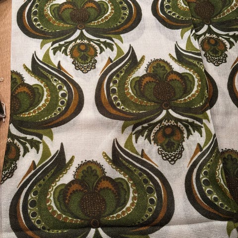 Vintage gardin lengde 1 stk hvit oransje/rød brun
