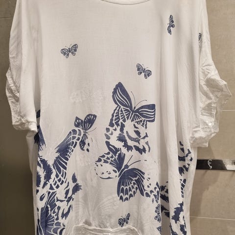 Flott t-skjorte / topp fra ZARA i str M. Brukt en gang. Mønster i blått og hvitt. Vår/sommer.