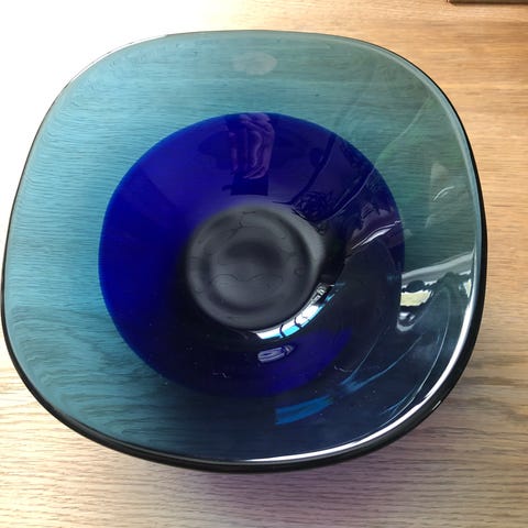 Lekker tung bolle i fargene rød og gul. 1741 gram. 20,5 cm i diameter og 1,3 mm tykk.