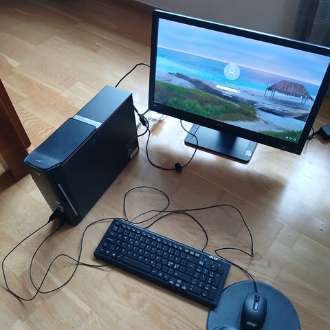 Skjerm følger ikke med, kun PC selges.