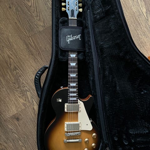 Strøken Gibson LPJ Gold Top 2013-modell, nydelig satt opp, dritgod å spille på. Oppgradert med Suhr humbuckers. Alt for lite brukt..! Denne ble kun laget i 2013, ergo er den allerede et solid samleobjekt. For JA: LPJ er en EKTE, amerikansk produsert Gibson Les Paul! - med så lite dilldall som overhodet mulig, derfor koster den ikke mye mer, som alle andre Gibson gitarer. Og NEI, det er faktisk IKKE en Les Paul Junior. Junior er også en fet gitar, men dette er en Gibson LPJ.