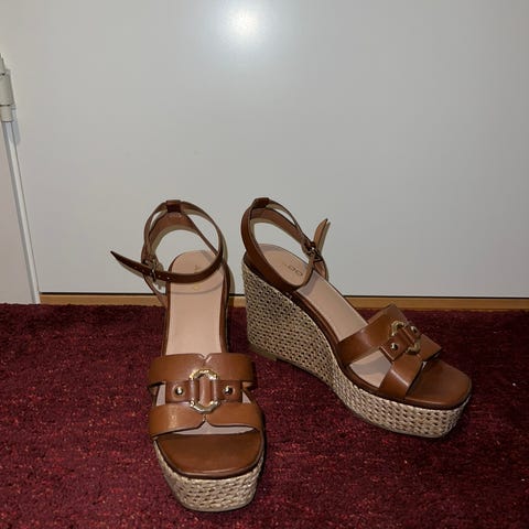 #Høyhælte #damesandaler, # plattform# blokkhæl #skinnsko