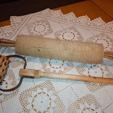 Antikke redskap for baking. Greit stand. Litt slitasje, men alt funker bra. Kan brukes som pynt. Gi en bud. Ønsker å selge alt sammen.