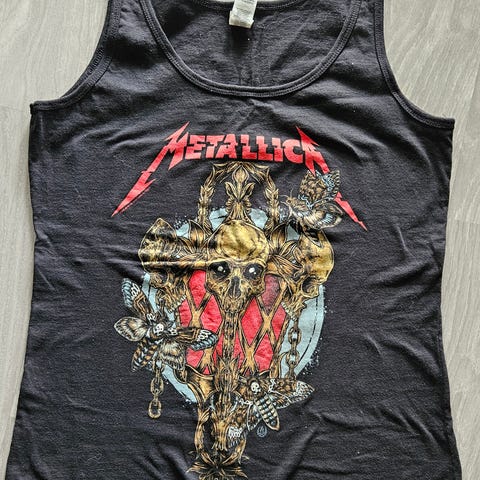 Megadeth halterneck topp fra Wicked Lester Clothing, pent brukt, kan sendes. Str. XS-M. Stretchy i ryggen. Den er ca. 40 cm lang og 39 cm bred (pit to pit). 799,- + frakt.