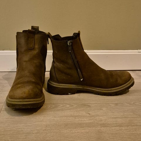 Nydelige ankelboots i skinn fra Boots. Rågummisåle som gjør at de ikke er glatte. Kjempegode å gå i. Lite brukt. Ingen slitasje eller feil. Str 37, men kan gå til 37,5 også.
