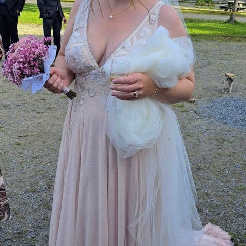 En utrolig fin brudekjole som kun er brukt i noen timer. Den er renset og klar til bruk igjen.