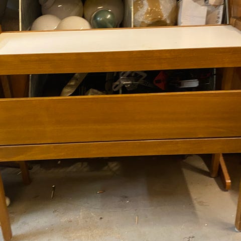 Skandinavisk design. Den ideelle hylle for tørking av laktosefrie knekkebrød og tørkede blomster. Kjøle- element kan ettermonteres . Kostnader må påregnes. Hel og pen . Må hentes.