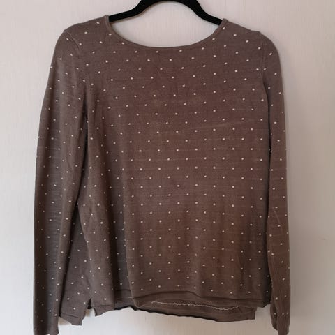 Langermet, lysegrå trøye fra Noa Noa.med møsterstruktur i stoffet, liten knapp og søte detaljer i naken.
