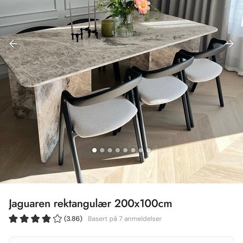 Vurderer å selge/sjekker interessen for dette nydelige spisebordet i marmor (fra Marinka, Spania). Basen er av aluminium. Vi må ikke selge, men har flyttet og vurderer å kjøpe et større. Dette er den eneste grunnen – hadde veldig gjerne kjøpt det samme bordet i større om det fantes!