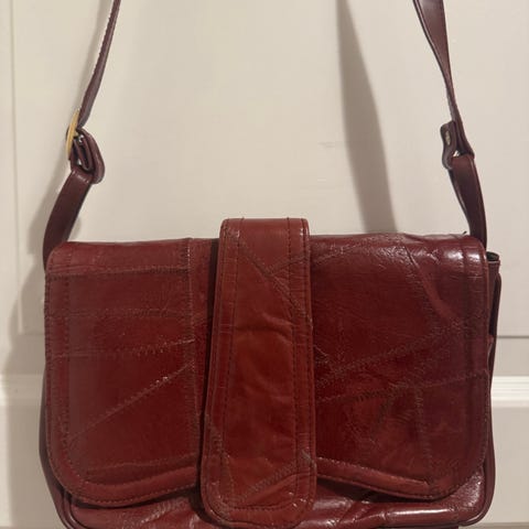 Vintage mørk rød / burgunderrød veske (ca 12 x 9.5 cm)