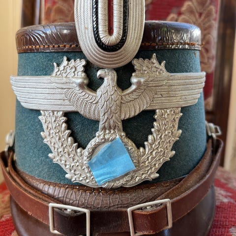 Dekorativ Lucerna paradehatt prydet med fjær, båret av italienske Arma dei Carabinieri. Det er en sjeldenhet at man får tak i disse med fjær. str ca 55
