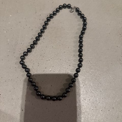 Et kjede som har gått av. Du kan kanskje reparere det eller lage noe nytt av stenene.