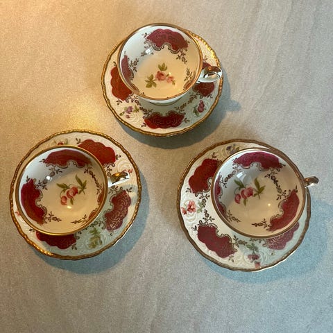 Nydelige små kaffekopper/espressokopper fra Bavaria. Gullmønstret. 6 kopper og 6 tefat.