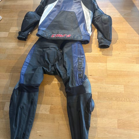 Berik Mc skinnbukse i str 62. Selges da jeg har solgt motorsykkelen. Buksen har noen bruksmerker nederst på beina.