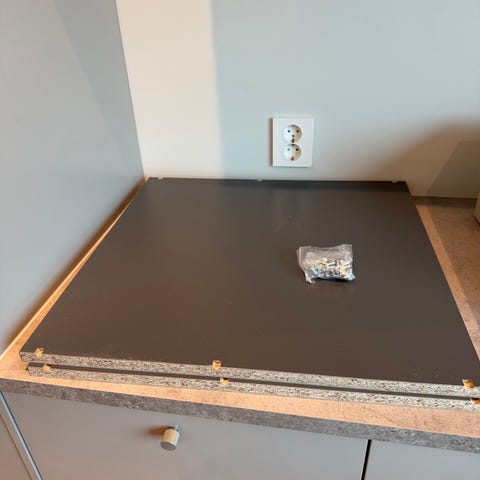 Folger også med 6 stk monteringsbrakett for hylle 90d (grafitt) , koster rundt 350 kr