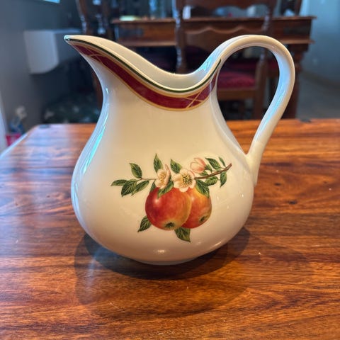 Nydelig mugge fra Firkløveren med motiv av epler og epleblomster. Rommer ca. 1,5liter.