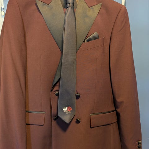 Helt ny Burgundy dress med vest og slips str. 52 selges billig.