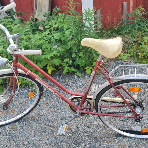 Triumf sykkel som passer til en jente 6-7 år. Tre gir og litt skrammer og merker. Dekkene må skiftes.