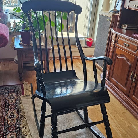 Selger eldre sort gyngestol.