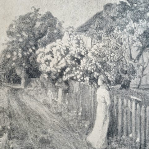 Bildet ligger i en ramme uten glass. Det har noen skjolder i ytterkantene (som vil dekkes av passepartout), og for øvrig noen mindre aldersspor. (Se nærbilder). Helhetlig framstår bildet fortsatt som fint.