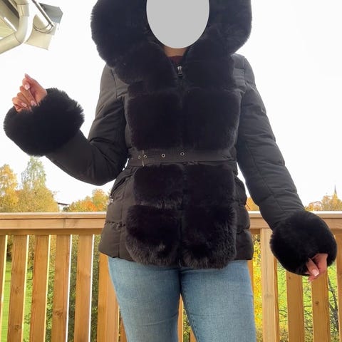 Nydelig dunjakke fra MET med pelsdetalj i S