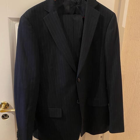 Buksen på bildet ser blå ut, men er samme farge som jakken.