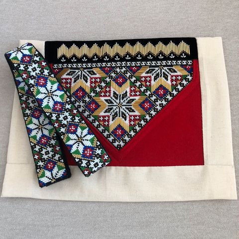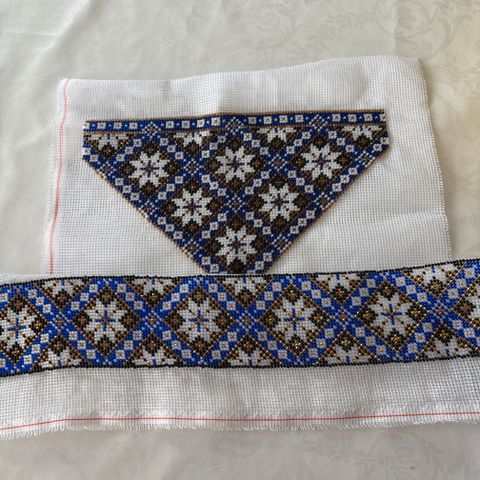 På bildet har jeg en eldre perlet bryst klut. Riktig brystklut & belte som følger med, ligger i foto