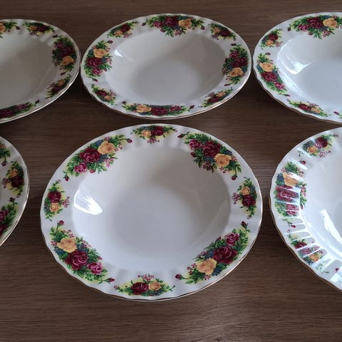 5 nydelige asjetter fra Homeburry - Windsor Gold - Moonlight Rose - selges samlet for kr 450,-.