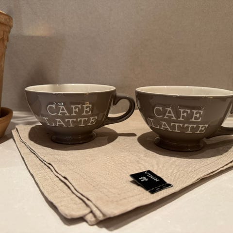 Brede, gode kopper til te / cappuccino. Kan sendes.