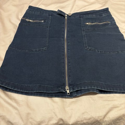 Skjørtet har 5 lommer og en splitt bak.