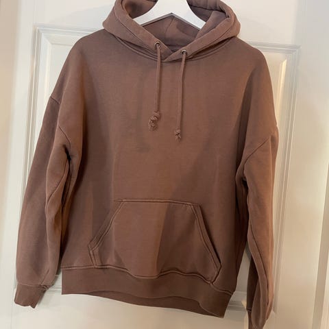Romslig hettegenser fra Adidas med lomme på forsiden. Stor str S.