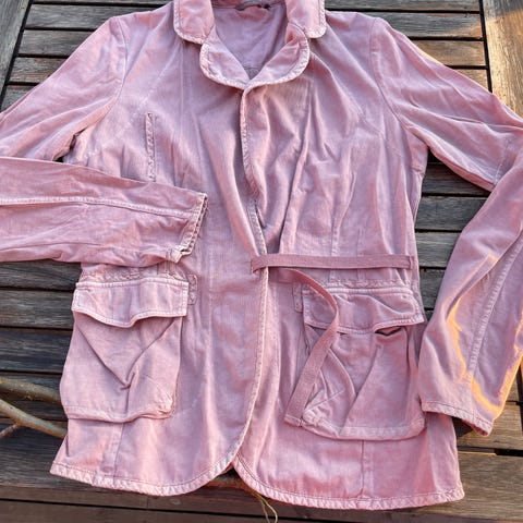 Blekrosa jakke i strl L selges. Svært lite brukt. Lett vattert jakke.