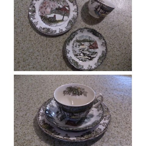 Super fint servise fra porsgrund i serien fjellflora selges da vi har gått over til nytt☺️ serien består av 12 kopper, 12 teskåler og 12 små tallerker🌟 i tillegg får du med liten karaffel til melk og en liten skål til sukker! Vi har 2x ekstra av de små tallerkene og 2x ekstra av de litt større, men ikke koppene til de 🥹