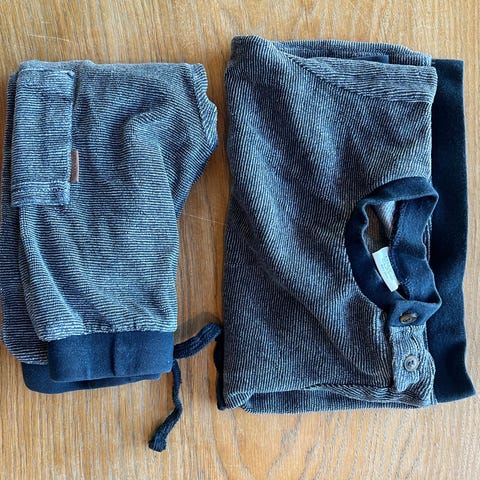 Sett i denimblått bestående av shorts og vest. Fint til både hverdags og selskap, eller en varm 17. mai. Vi har brukt både lang- og kortermet skjorte under. Regulerbar med strikk i livet på shortsen.