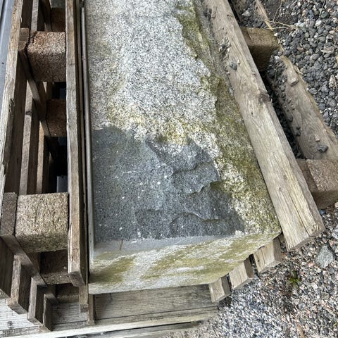 Granitt stein brukt som trappetrinn. 94x37 høyde 15cm.