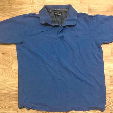 Lite brukt bomull skjorte med 3 knapper fra Blue Harbour Marks&Spenser i blå og murstein farge striper . Lengde ca 60 cm, bredde mellom ermene ca 55 cm, ermene lengde ca 60 cm