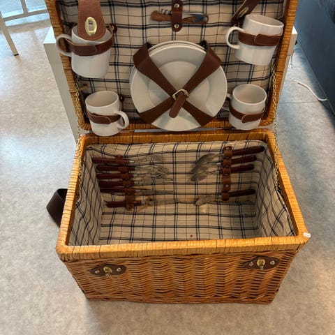 Flott picnic koffert med tilbehør selges for pris eller anstendig bud.