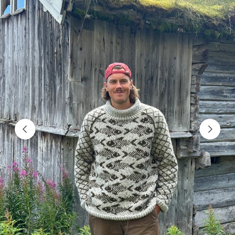 "Heia Norge" genser herre selges. Garn opptil størrelse small, men ingenting i veien for å strikke xs heller. Får med oppskrift på ark om ønskelig.
