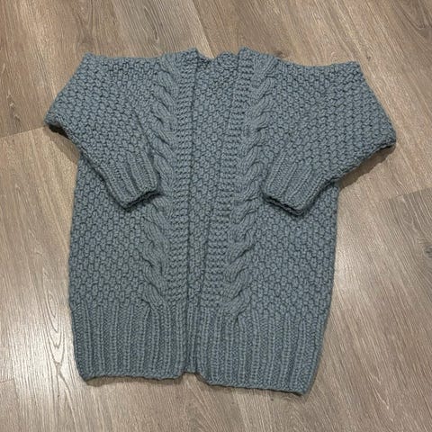 Heklet cardigan. Ubrukt. 65% lin, 35% bomull. Passer nok best S. Ny pris: 2100,-