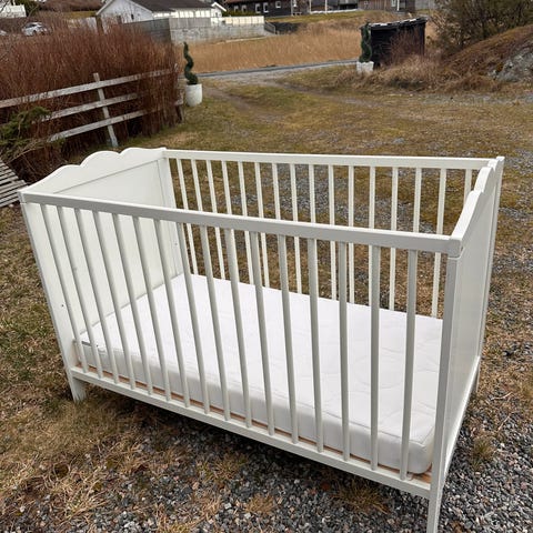 Gammel barneseng på hjul