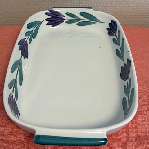Rektangulært fat. Glansfull og hel, med dekoren i perfekt stand.