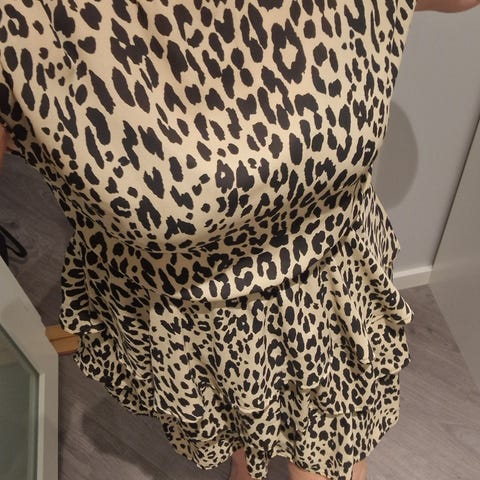 Tettsittende & kort Cut Out Shoulder Leopardkjole med Frynser 🐆 Ingen bruksmerker (M)