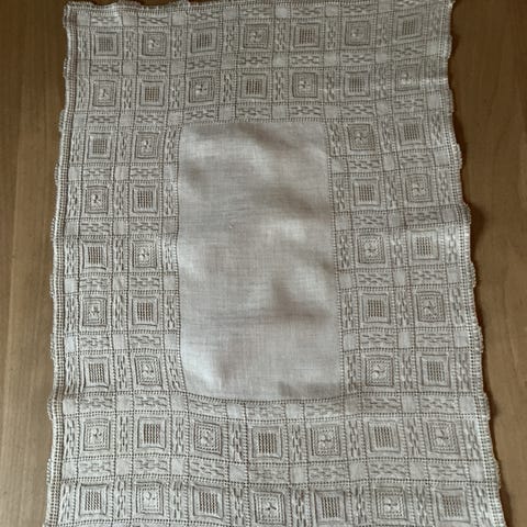 Lys plommefarget. Ubrukt. Broderi med sølvtråd pluss lys plommefarge