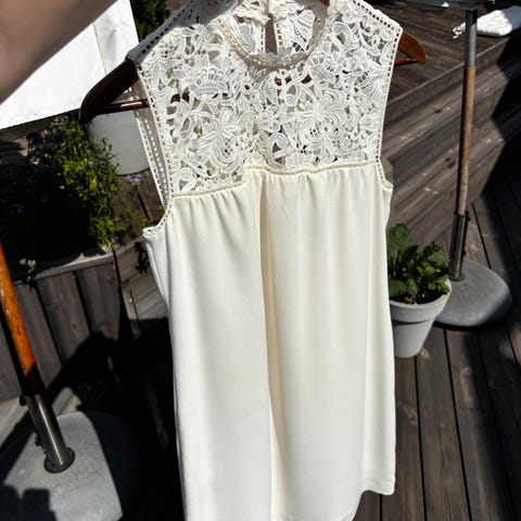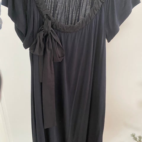 Elegant, strikket kjole fra Theory. Ermeløs med utskjæring i ryggen og skjørt som skrår ut. Størrelse M, lite brukt, som ny.