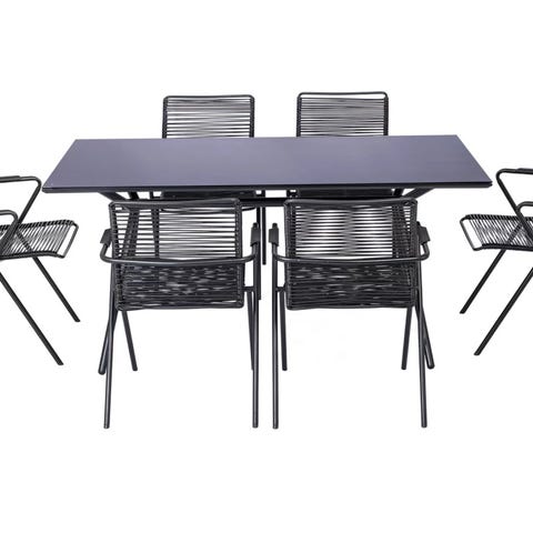 Spisebordet og stolene er laget av vedlikeholdsfri PE-rotting, som gjør dem enkle å rengjøre med en fuktig klut, så vel som perfekte for utendørs bruk. Takket være stålrammene er bordet og stolene stabile og sikre. Glassplaten gir også et luksuriøst preg på uterommet ditt. I tillegg er disse utestolene lette og kan stables for å spare plass når de ikke er i bruk.