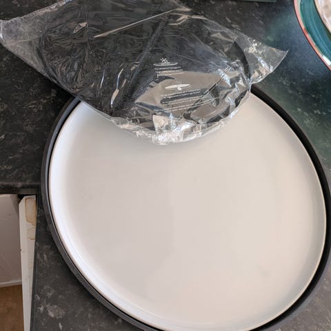 Kakefat med lokk og kjøleelement, 4 deler som lett kan tas fra hverandre: Bunn, kjøleelement, dekke for kjøleelement og lokk med håndtak.