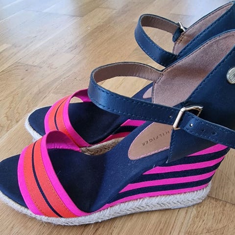 Selger pent brukt Tommy Hilfiger blokk sko. Høy, bred hæl.