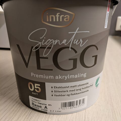 Brukt ca 1/6 av boksen, så det er ca 0.55l igjen. Selger til halv pris (nypris 300kr).