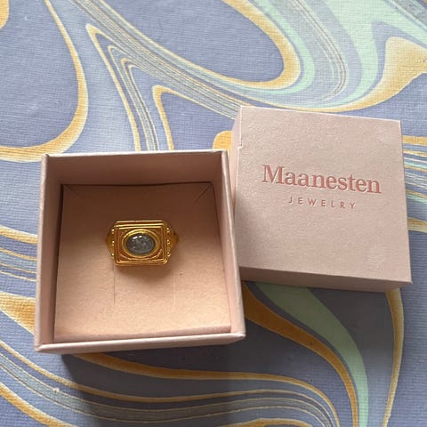 Superfin ring fra Maanesten. Resirkulert sterlingsølv belagt med 18 karat gull.